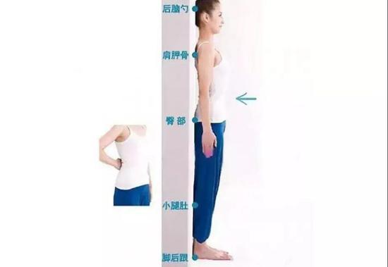 正确的做法是:后脑勺、肩胛骨、臀部、小腿肚、脚后跟贴着墙,并收紧腹部。