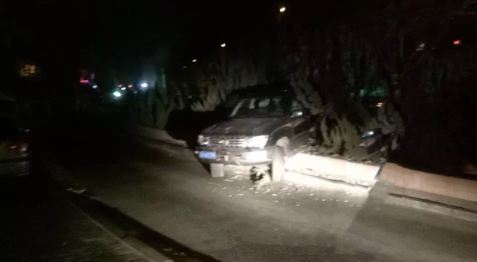 2月18日晚间10时左右,大连旅顺口区元宝园小区门前发生一起交通事故,一辆丰田越野车一屁股“坐”进小区花坛内,车损严重,司机则不见踪影。有知情人称,事发时该越野车正在倒车。