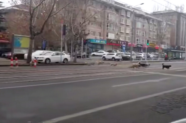 “头一次在市区内见到这么一大群流浪狗,有组织有纪律,还走的人行横道,前面的还会回头张望没过马路的同伴,看了心里有点不是滋味,都是养了被遗弃出来的。”拍摄网友表示。