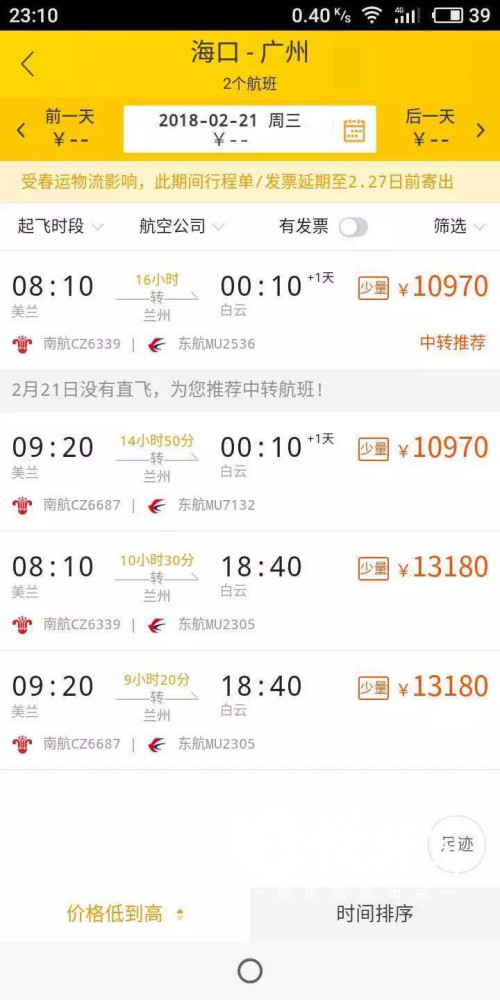 对于选择换乘的旅客而言,机票价格同样也不太“友好”,不少人已经在朋友圈晒出了海口飞广州的机票价格——上万元。