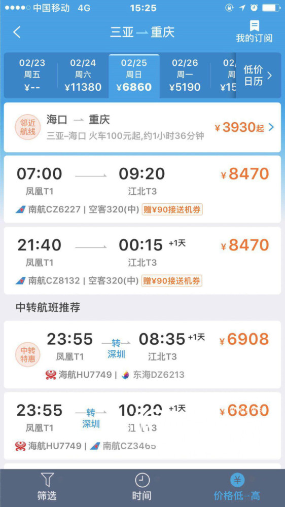 对于不少重庆市民而言,自驾返程可谓一路艰辛。然而,回家的机票同样一票难求。今日下午3点,上游慢新闻-重庆晚报记者登录携程旅游APP,查询海口到重庆的机票,2月20日至2月23日均无销售。直到24日,美兰机场到江北机场T3的机票价格为5900元。往后几日,最便宜的机票也要近4000元左右。
