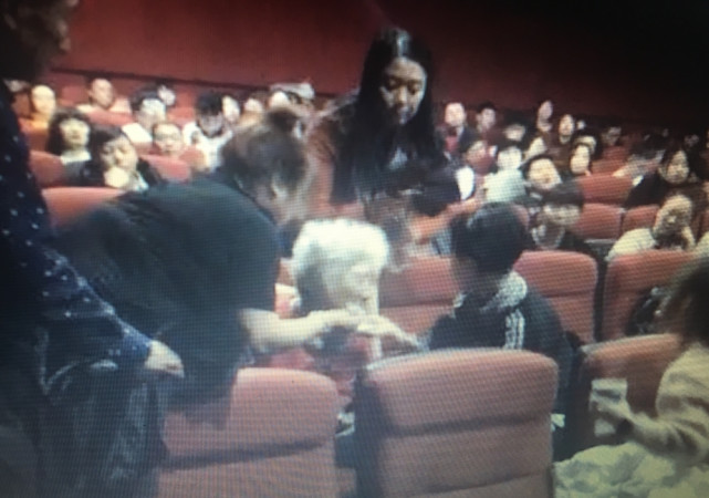 郭女士吓坏了,不知所措。在120赶到之前,一位坐在前排的女观众赶过来,用熟练的急救知识帮忙抢救郭女士的婆婆。老人这期间呕吐,吐了这位女观众一身,她也毫不嫌弃。