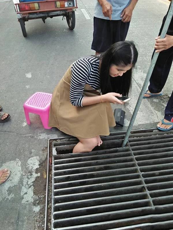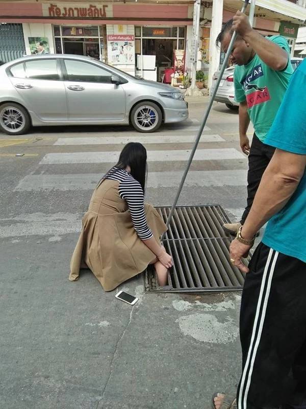 标题: 美女走路看手机卡进下水道,路人忙施救她继续刷屏
