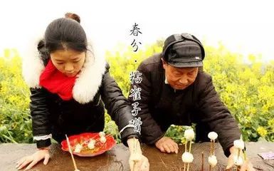 春分这一天农民都按习俗放假,每家都要吃汤圆,而且还要把不用包心的汤圆十多个或二三十个煮好,用细竹叉扦着置于室外田边地坎,名曰粘雀子嘴,免得雀子来破坏庄稼。