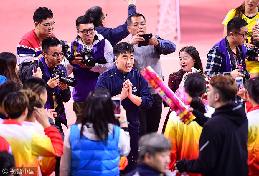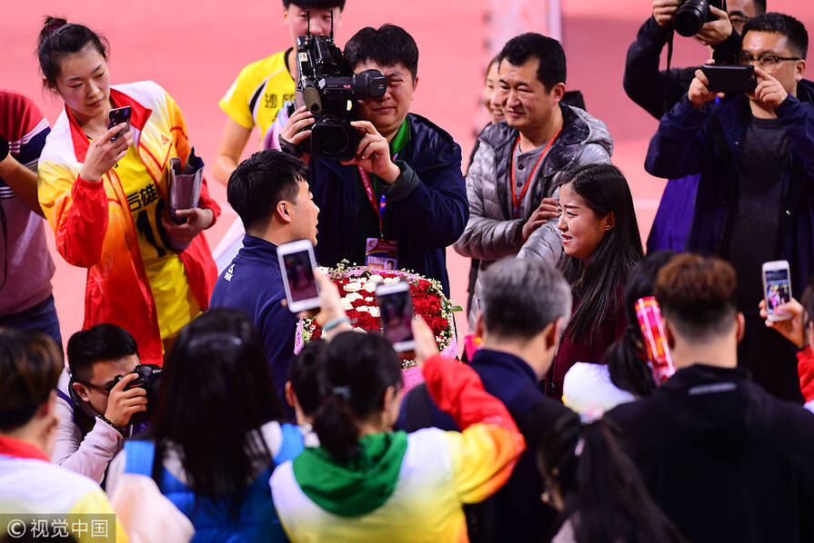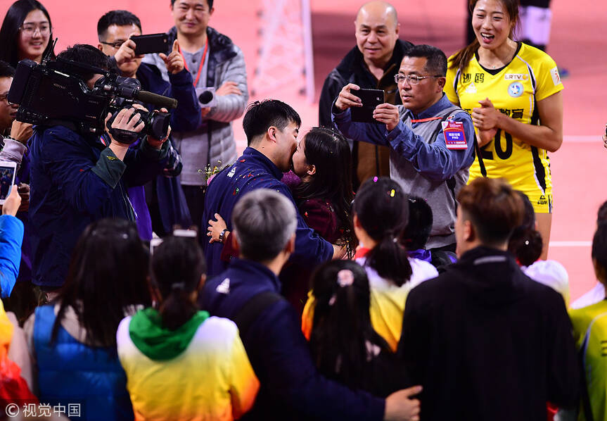 2018年3月24日,辽宁省,17/18女排超级联赛3、4名决赛第3场,辽宁Vs江苏,辽宁队医现场求婚成功。