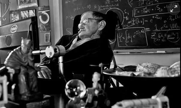 霍金坐在轮椅上,讲了四十多分钟,现场观众听到的,是电脑控制的语音合成器发出的声音。