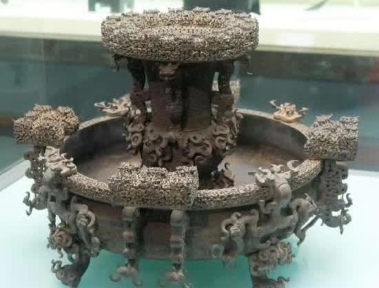 曾侯乙墓是我国迄今为止发现最具价值的古墓,出土的文物也极为珍贵,其中就有8件被列为国宝级文物。这件青铜尊盘是此墓出土文物中就复杂的,也是保存最完好的,被世界各界誉为稀世珍宝。同时这件文物在2002年被国家文物局列为首批禁止出境展览文物,这件逆天文物此后永久禁止出境。