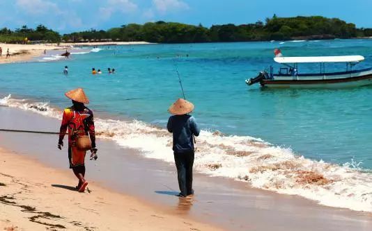 努沙杜尔大部分的沙滩多为酒店或是度假村的私人沙滩,但是在Bali Collection广场后面就有这样一个非常好的公众沙滩。