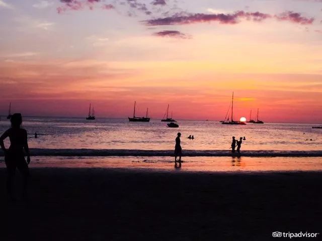 这里的沙滩平缓绵延4公里,沙质细腻洁白,还可以观赏到迷人的夕阳落日,落日风帆值得一坐。