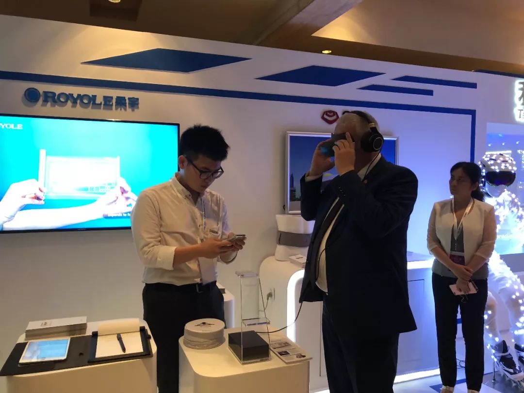 △一位外国政党代表在体验VR眼镜