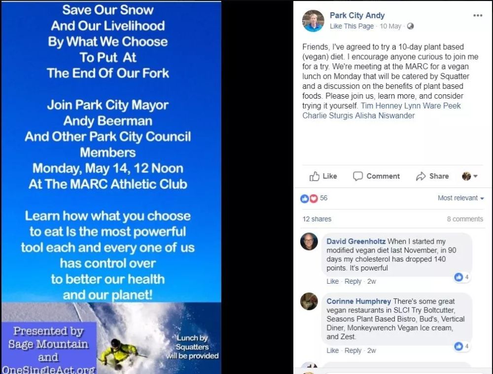 据美国犹他州公共电台报道,帕克城(Park City)市长Andy Beerman市长及他的夫人都成为了纯素食者(vegan),并且还鼓励市民们加入他们。