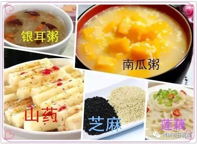 秋季干燥,多吃水果蔬菜消除秋燥症,多吃水果生津解渴、止咳化痰、清热降火,养血生肌、润肺去燥。养肺的蔬菜包括山药、胡萝卜、莲藕、百合、银耳、木耳、豆腐等。
