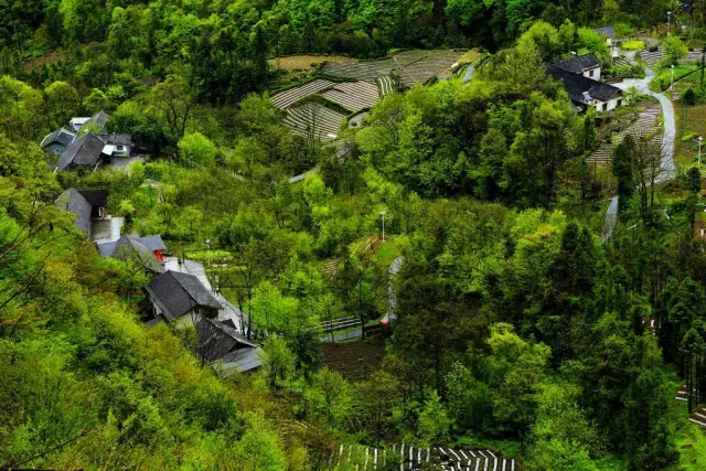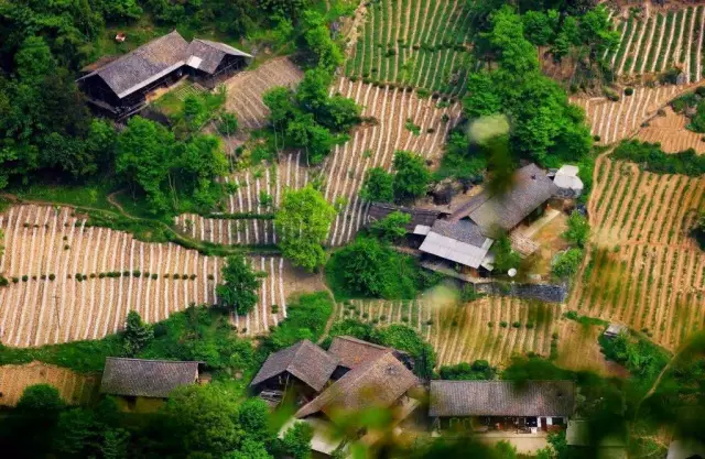 满眼苍翠中,山坡上的茶园如梯田般齐整;亭亭如盖的古树旁,古朴厚重的吊脚楼静静伫立。