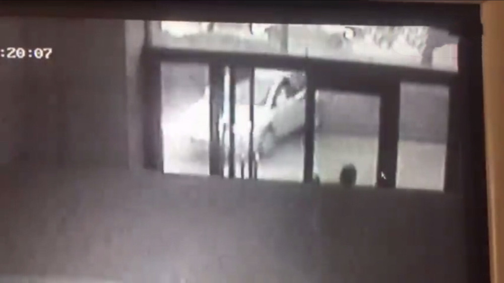 事发公建的大门低于道路,要从大道进入公建,需要下一段台阶。这家公建门前的监控视频显示:3日晚上6点20分左右,一辆轿车在路上正常行驶时,突然急向右转,冲下了公建门前的台阶,径直冲向公建,一直撞上楼体外墙才停了下来。