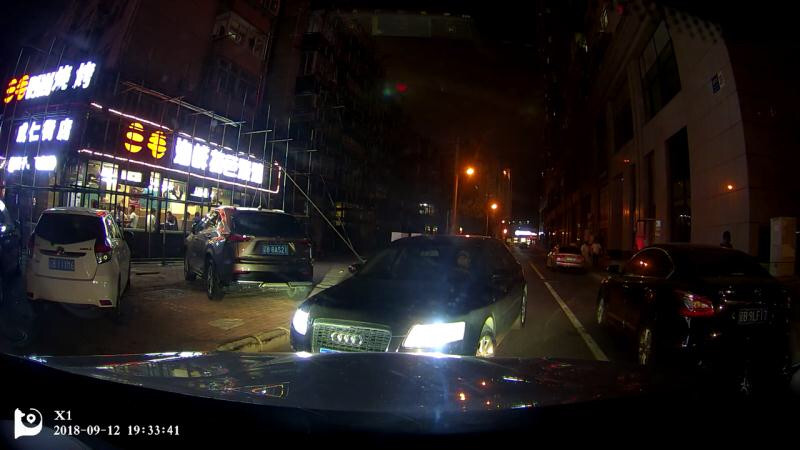 12日晚上7点半左右,大连一位司机驾车从沙河口区成仁街行驶入集贤北街。集贤北街是一条单行路,摄像车的司机正常行驶时,一辆黑色奥迪轿车在一名女司机的驾驶下迎面开来。