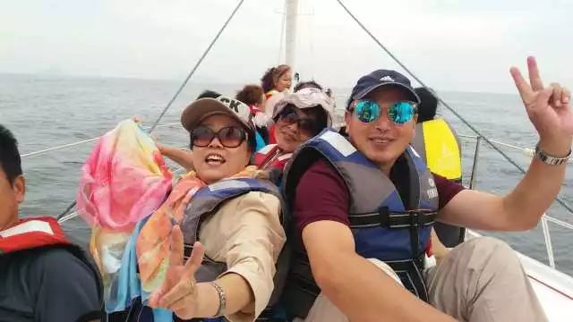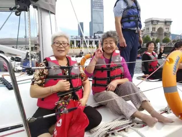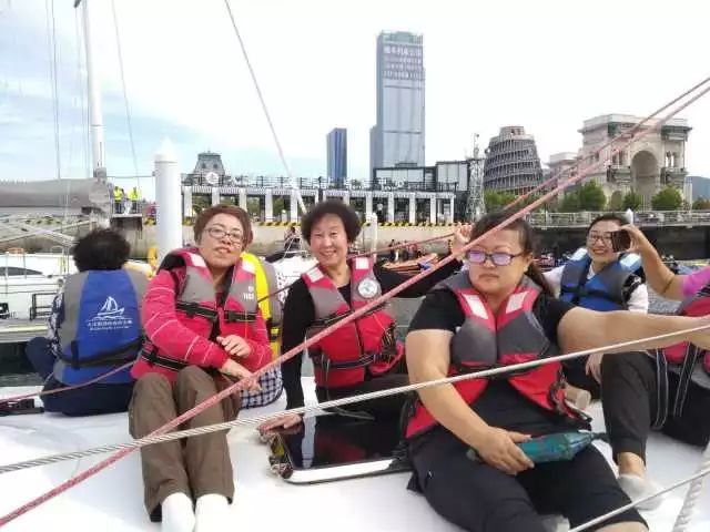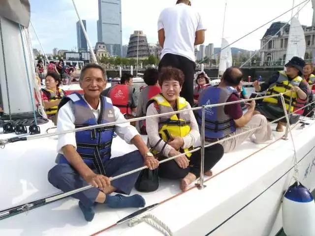 好人模范们乘坐帆船、游艇,从海上观看大连,