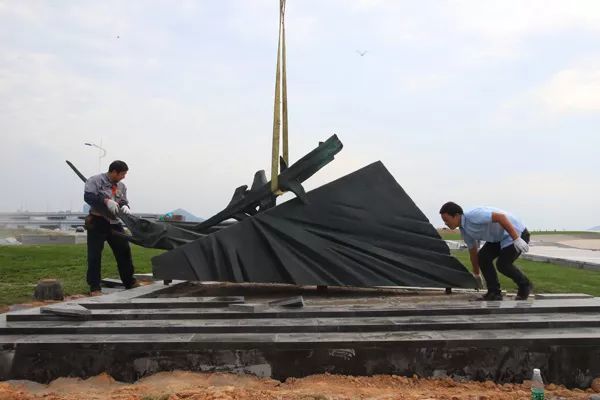 一些大型雕塑本身就是分段制作,现场经过焊接,与底座固定,重新打磨效果。