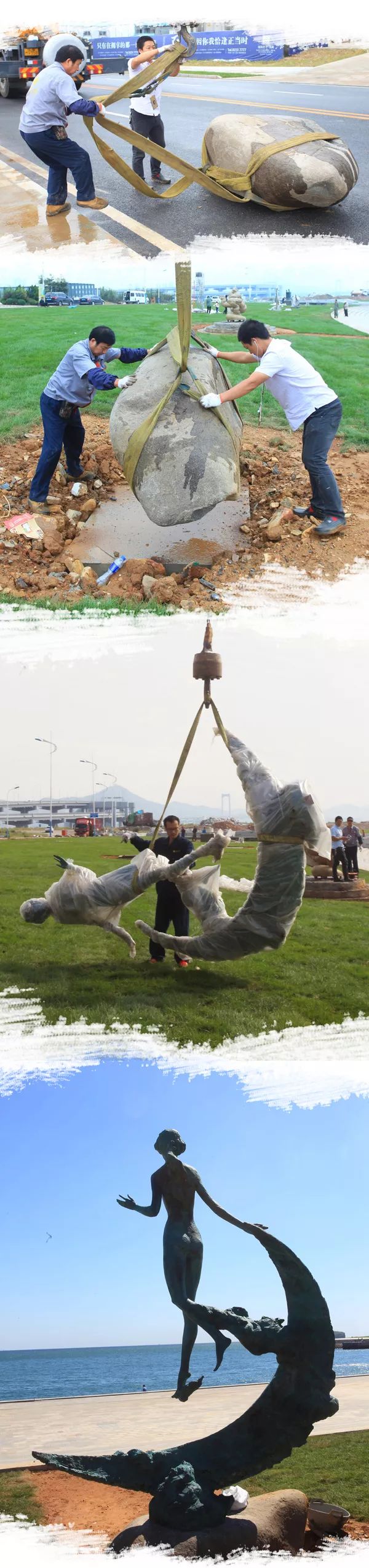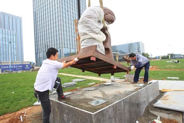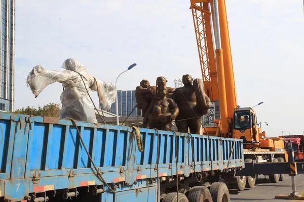 本次安装的雕塑以青铜、白钢、大理石、花岗岩等为材料,第一批作品9月18日抵达现场,由制作厂家负责现场安装。