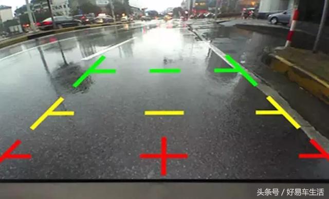 很多新手司机并不太会用倒车影像,表示不知道倒车影像中的绿线、黄线和红线到底是什么意思?