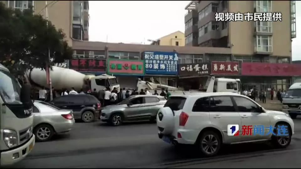 惹大祸了!大连一水泥罐车突然失控冲向路边!连撞7家店铺!