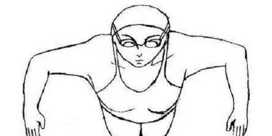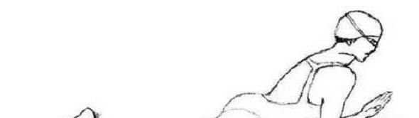 侧面内划收手动作:抓水后头部缓慢出水换气,手臂45°角,掌心由外向内划水,双臂贴紧身体时,双腿后收至臀部