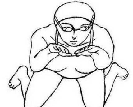 收腿:收腿是接滑行开始的,腿由于本身的重量而开始下沉,这时两腿稍内旋,使脚跟分开,小腿和脚尽量靠近臀部,膝关节随腿的下沉向前边收边分。收腿时,要求收腿路线要短,阻力要小,又要为蹬水创造有利条件。