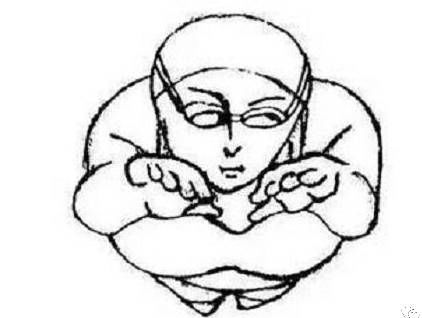 手臂前伸动作:掌心由向上转为相对、合并,伸直手肘
