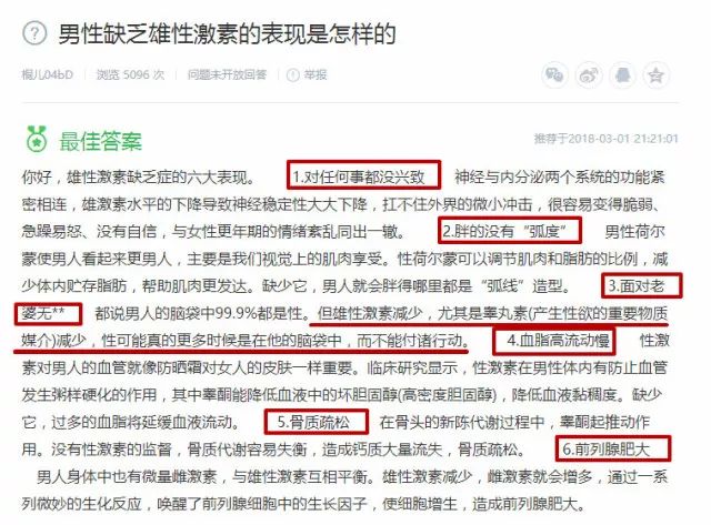 男性的雄性激素在二三十岁时分泌最为旺盛,之后逐渐减少。法国一个研究小组调查了1408位20-60岁不等的男性,发现在这四十年时间内,男性的雄性激素分泌量减少1/4,表现为: