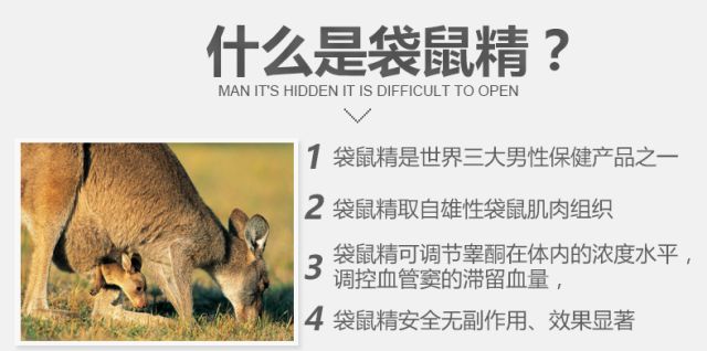 如果weige是男人“精力旺盛”的第一选择,从现在开始,袋鼠精将成为你的最好选择。温和的进补方式不仅是男人的加油站,更能让她重新爱上你,享受你~