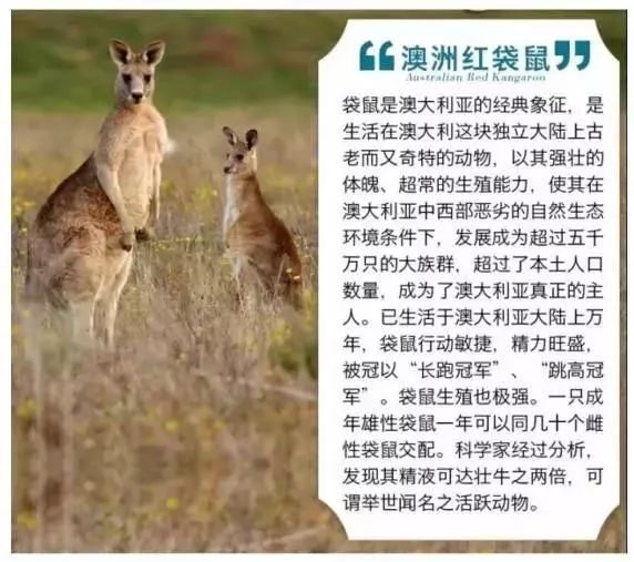 澳洲雄性红袋鼠是一种神奇的动物,一年可以同几十只雌性袋鼠交配,所产精液是壮牛的两倍,袋鼠肉内高含量的锌,是维持性功能的关键。