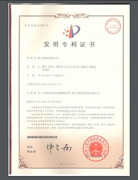 蜂舒坦已申请国家专利,专利号为:201711013989.X