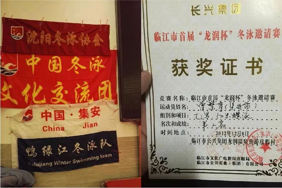 2012年松原市举办国际冬泳邀请赛,在查干湖,那里气温更低,风更大,更具挑战性,他又一次证明了自己的坚强毅力。