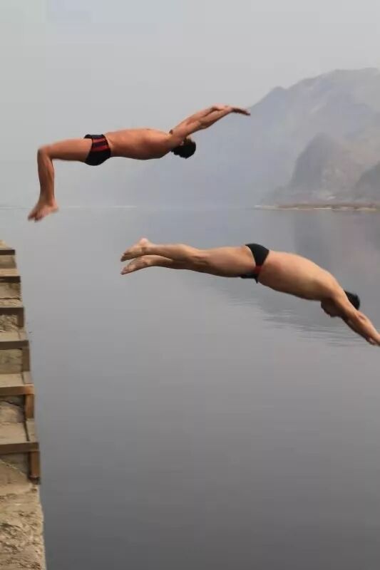 就这样,一个人游,坚持了四年,开始有人跟着他一起游了。