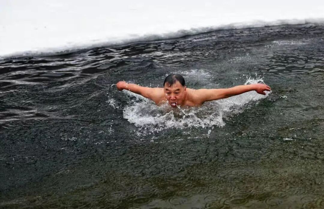 有阶段,他的身体出了问题,浑身无力,胃不舒服,吃药治疗不见强,他就想起朋友说的冬泳对健康有好处。他开始尝试冬泳锻炼,一点一点适应。