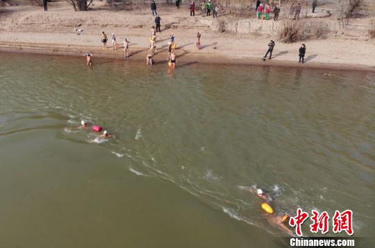 冬日的午后阳光明媚,兰州马拉松公园冬泳队队员按时来到集合地点,规定好下水和起水的具体位置,队员们开始做热身运动,换好泳装准备下水。