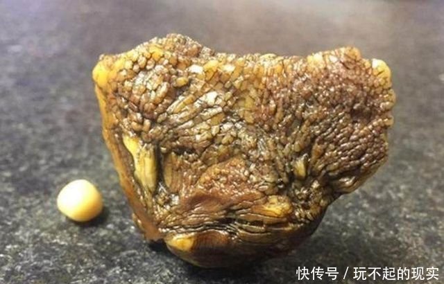 回去以后,小伙仔细研究了捡到的这块奇石,它的材质看起来像一些玉石之类,且非常的坚硬,整块石头金黄色,最让人诧异的就是它身上的一些奇怪纹路,好似一些动物纹一般嵌在上面,非常震撼!