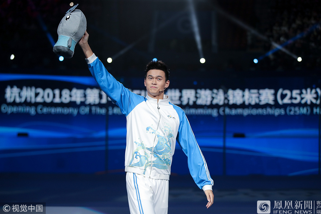 孙杨资料图。2018年12月11日,浙江杭州,2018短池游泳世锦赛开幕式举行,孙杨亮相。来源:视觉中国