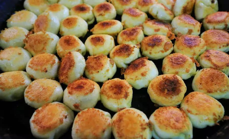 做法 以牛肉为馅,用面皮包成锅贴,放入菜籽油锅中煎至金黄色即可