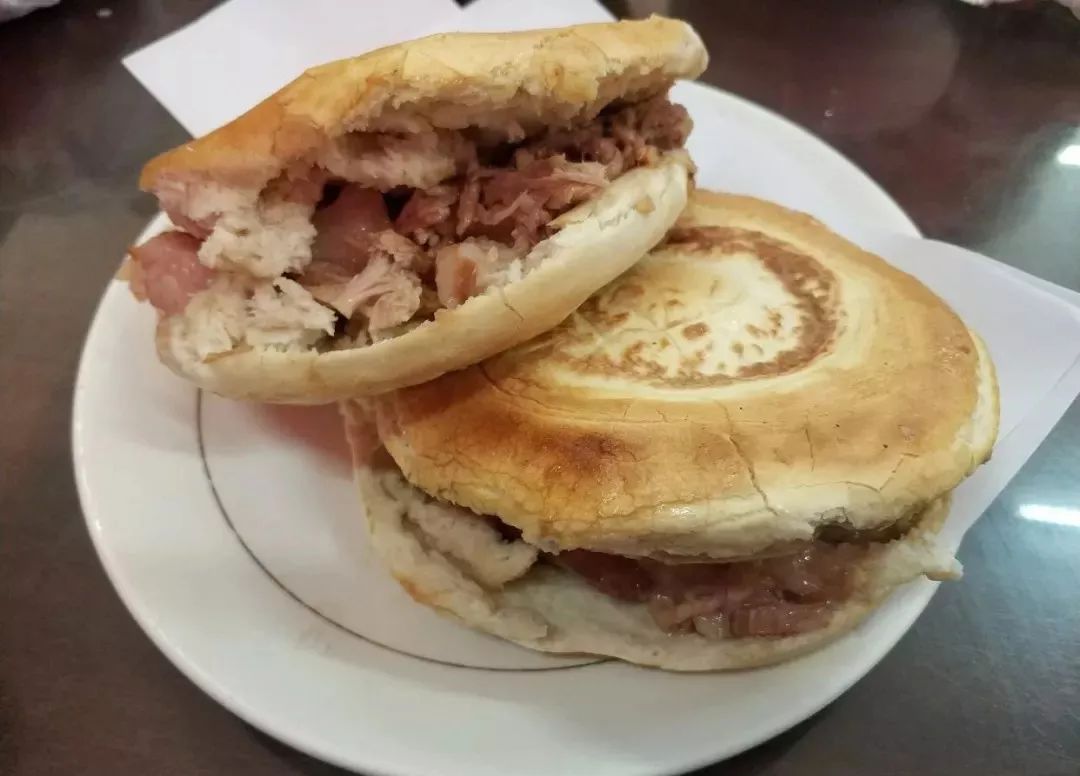 西安的肉夹馍花样极多,从巴掌大到脸盆大各不相同。但西安人只要说肉夹馍,默认一定是腊汁肉夹馍。一个馍里,展现了两种食物的绝妙组合:白吉馍,腊汁肉。互为烘托,将各自滋味发挥到极致。馍香肉酥,回味无穷。