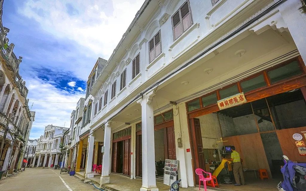 同时,铺前镇是文昌市的华侨之乡,据史料记载,从明朝起,就有海南人经铺前港下南洋,每年有成千上万人“南下”。1877年左右,侨居海外的文昌人回到铺前,建起了南洋风格的骑楼建筑。如今在铺前镇老街行走,一座座镌刻着中式传统浮雕的百年骑楼,依旧诉说着华侨的故事与昔日外贸的繁荣,与两旁的杂货店、理发店、烟火食铺相互印衬,让人顿觉时空交错。