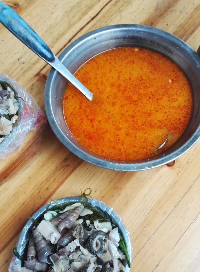 若觉不过瘾,还可外带一份回家煲汤煮火锅,周到的店家早已为食客们备上了瓶装的汤底。当地人食用糟粕醋的历史已无从考究,但这份始于铺前民间的美食已然成了食客难以忘却的舌尖记忆,代代相传。