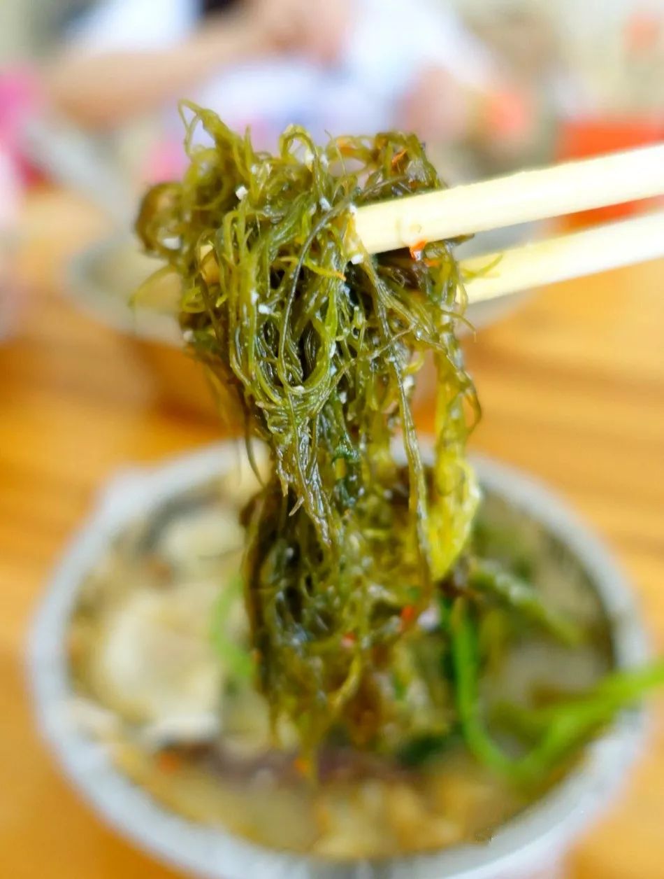 最受食客欢迎的配菜莫过于海菜跟石葱,当地人心目中,堪称是糟粕醋的灵魂伴侣。海菜浓密纤细,就着汤底的酸辣劲夹上一筷子,颇为爽口;石葱与常见的葱相比,更细且香,口感上也更有嚼劲,卷成一团的石葱叶子包裹着葱瓣,葱瓣的脆甜和叶子的韧度相互配合,绝妙无比。
