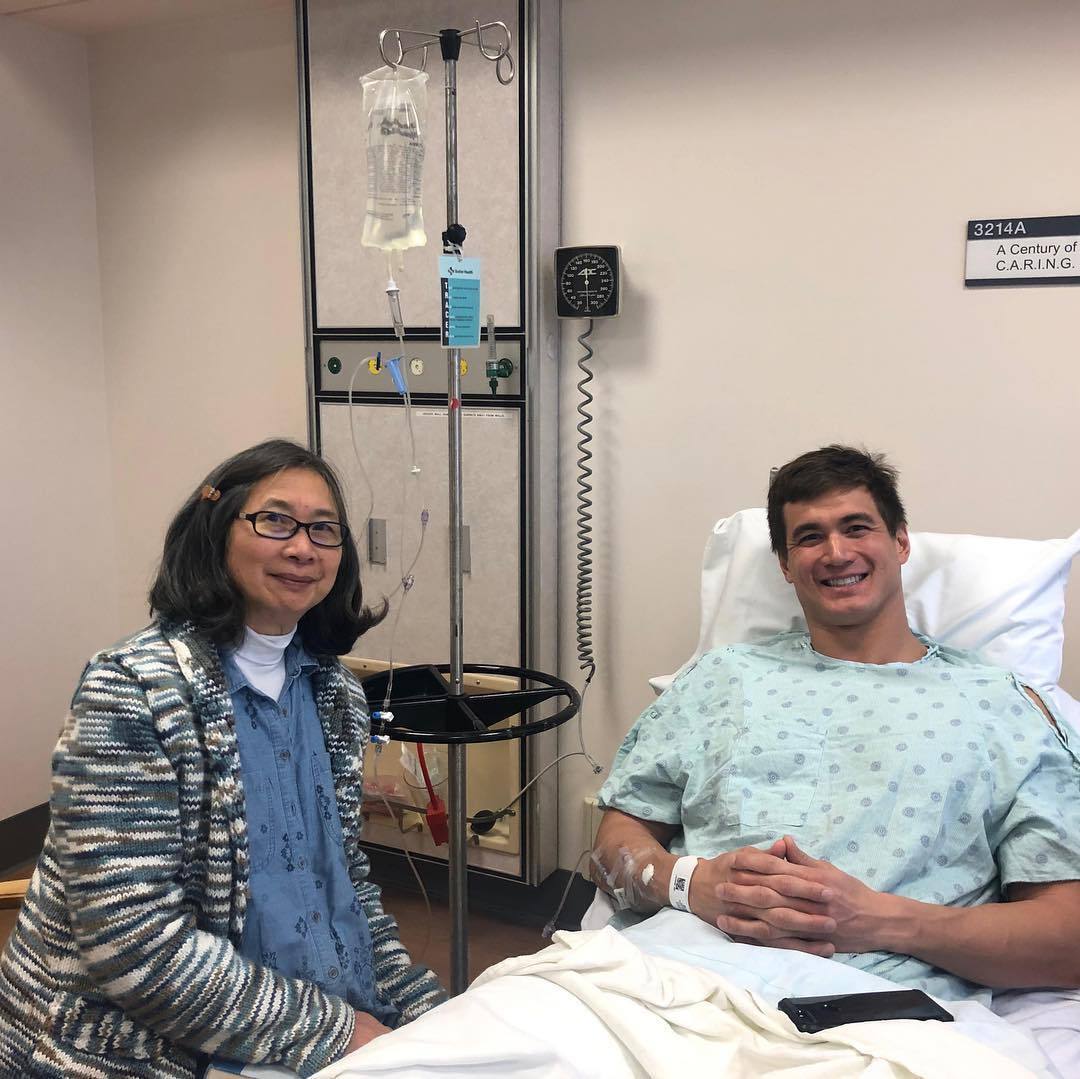 许多人不知道,癌症患者自杀风险是平均水平13倍,至少6%的癌症患者曾想到、考虑或计划过自杀,即使心理强大如运动员,也有类似情况。除了得到妻子哈莉和妈妈梁洁云的支持,倪家骏还得到了队友们的帮助。他在母校加州大学伯克利分校训练,公路自行车巨星兰斯·阿姆斯特朗和奥运会游泳运动员埃里克·尚托都得了睾丸癌,他们都向他伸出了援手,女子400米、800米、1500米个人自由泳项目世界纪录保持者——美国女子游泳传奇人物凯蒂·莱德基寄了一张手写卡。