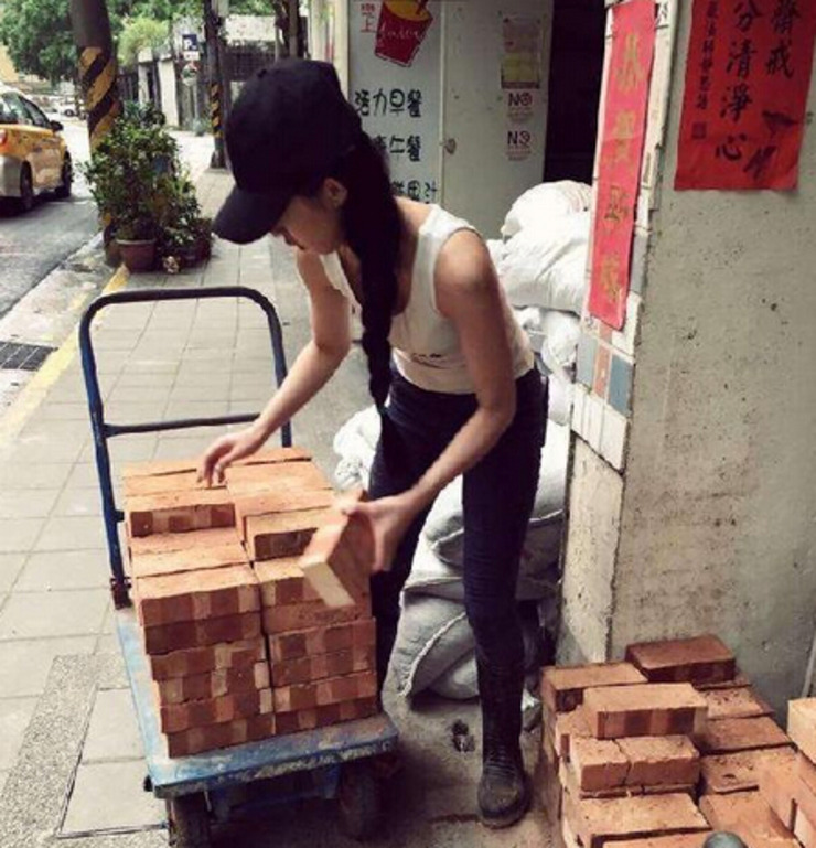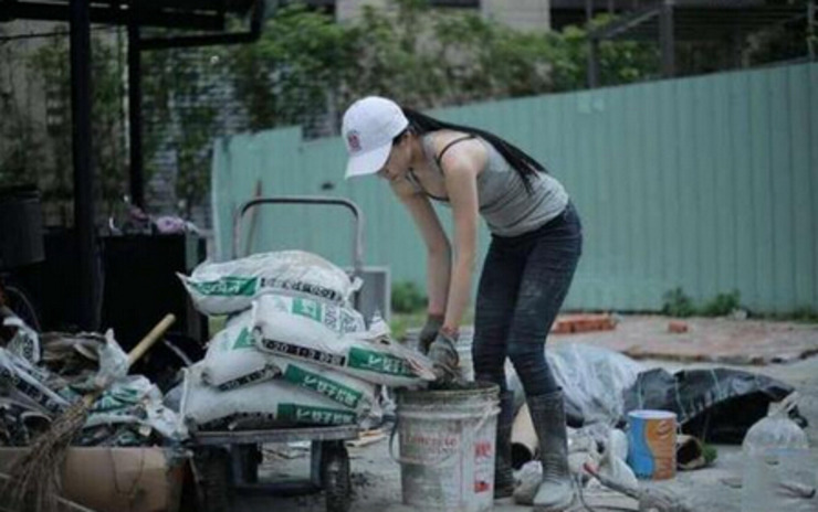 美女在工地上搬砖和水泥,只为圆一个咖啡馆的梦!