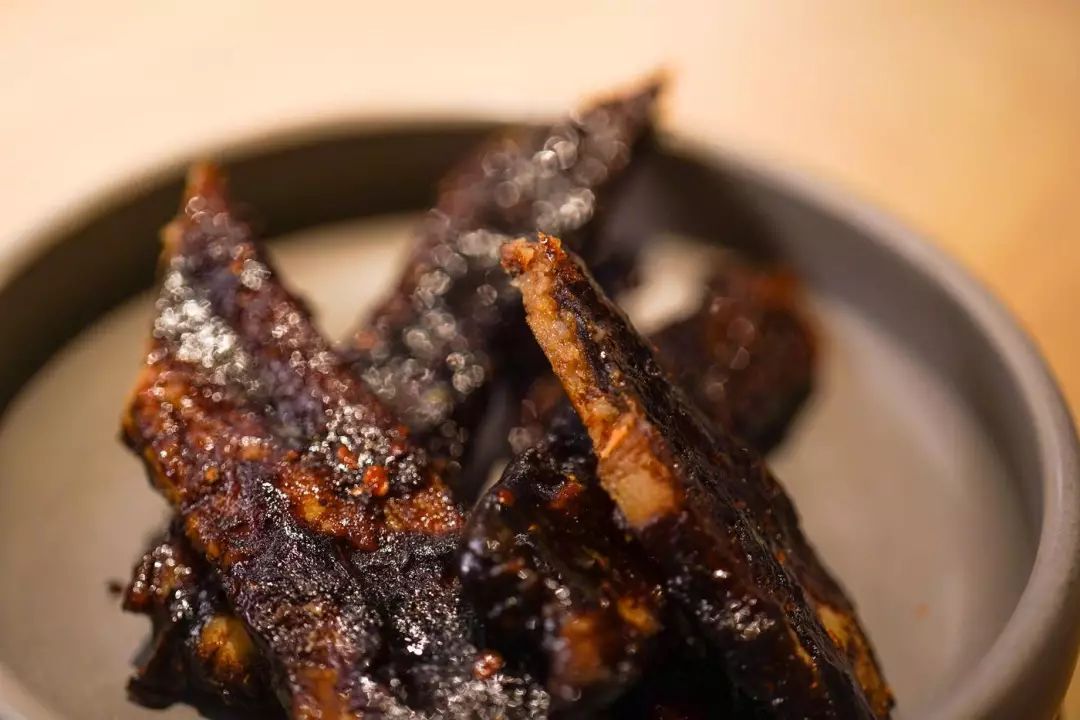 用了四川花椒、辣椒等多种香料再刷上厚厚一层蜂蜜烤过的大培根片,又香又耐嚼,可以喝酒!