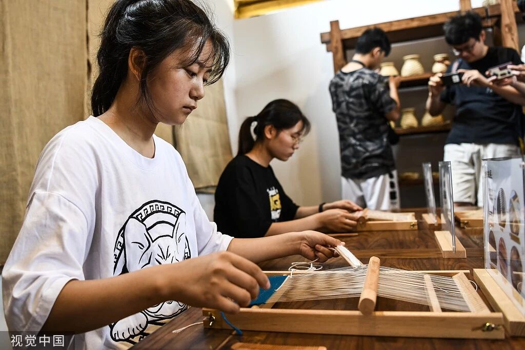 旁边的“良渚河景房”内,还有古法纺织、木陀螺制作等互动体验项目,你可以当一回新石器时代工匠,感受良渚劳动人民的智慧。