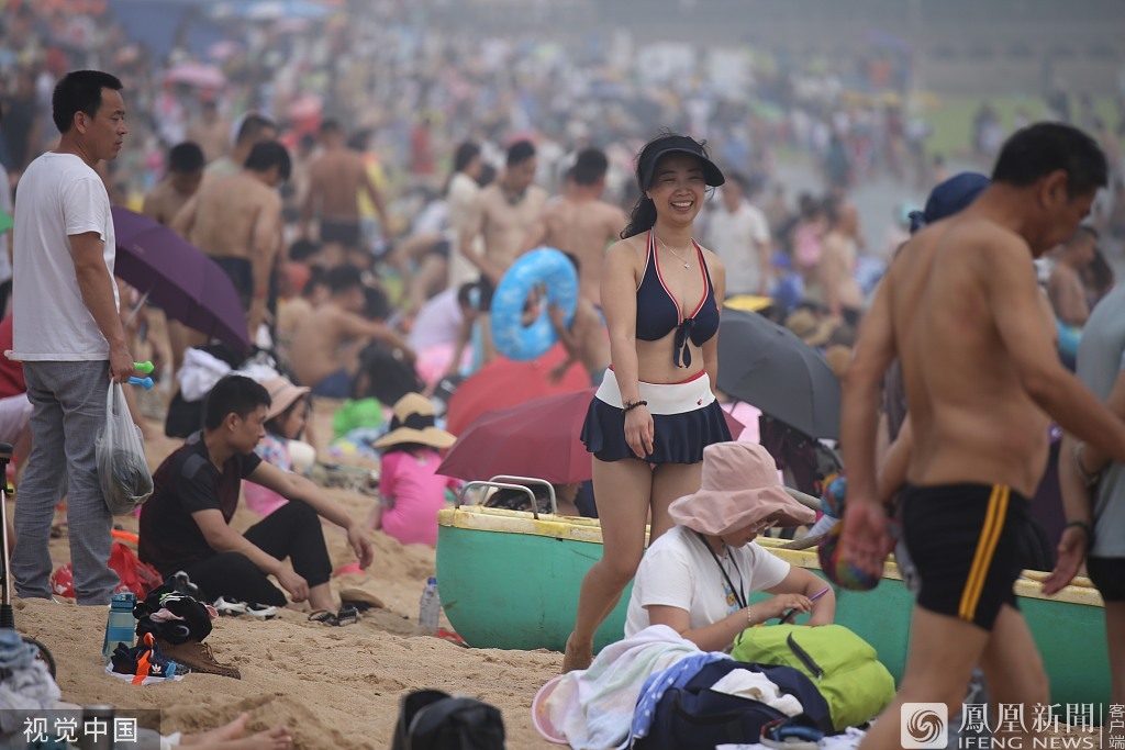 当日是农历六月初十,入伏日,青岛第一海水浴场人山人海,大批市民游客前来洗海澡戏水消暑,享受大海清凉。