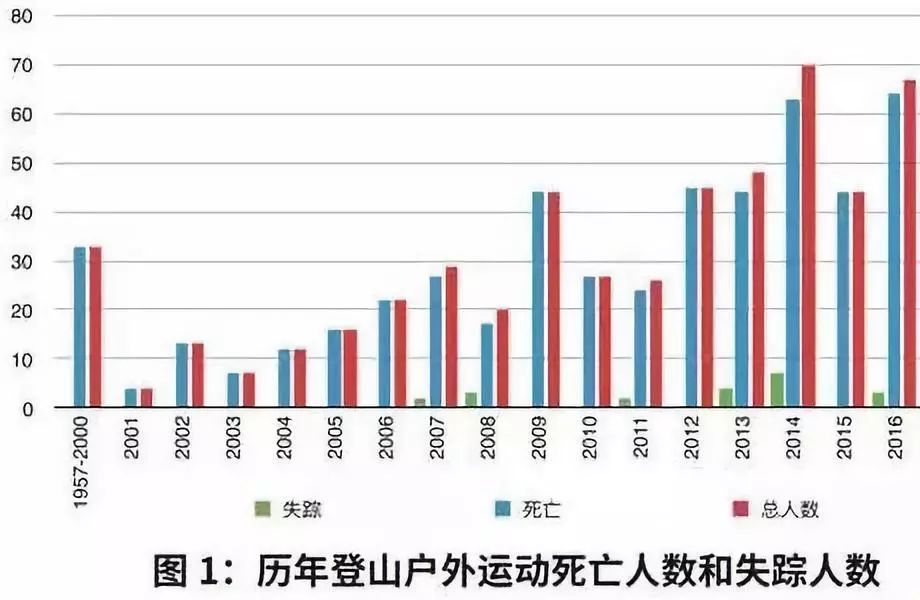 由于户外运动的日益普及,,发生户外事故的次数乃至伤亡人数呈逐渐上升的趋势,雨季溺水事故在死亡事故中比例高达52%。