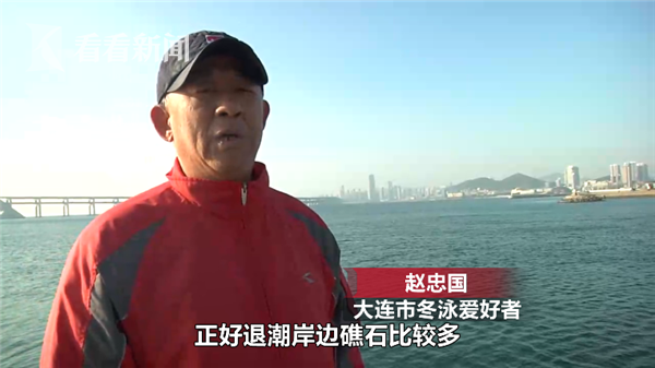 大连市冬泳爱好者赵忠国说:“正好退潮,岸边礁石比较多,海蛎子壳比较多,我要是从那边坝下去,不跟趟,离人太远了,为了救人,我冒险从这下去了。”