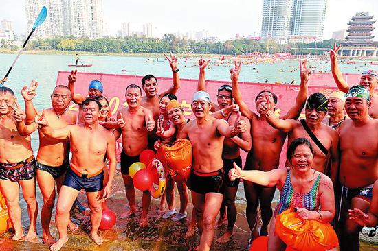 3200余人冬泳横渡邕江迎新年 最大超90岁最小仅4岁
